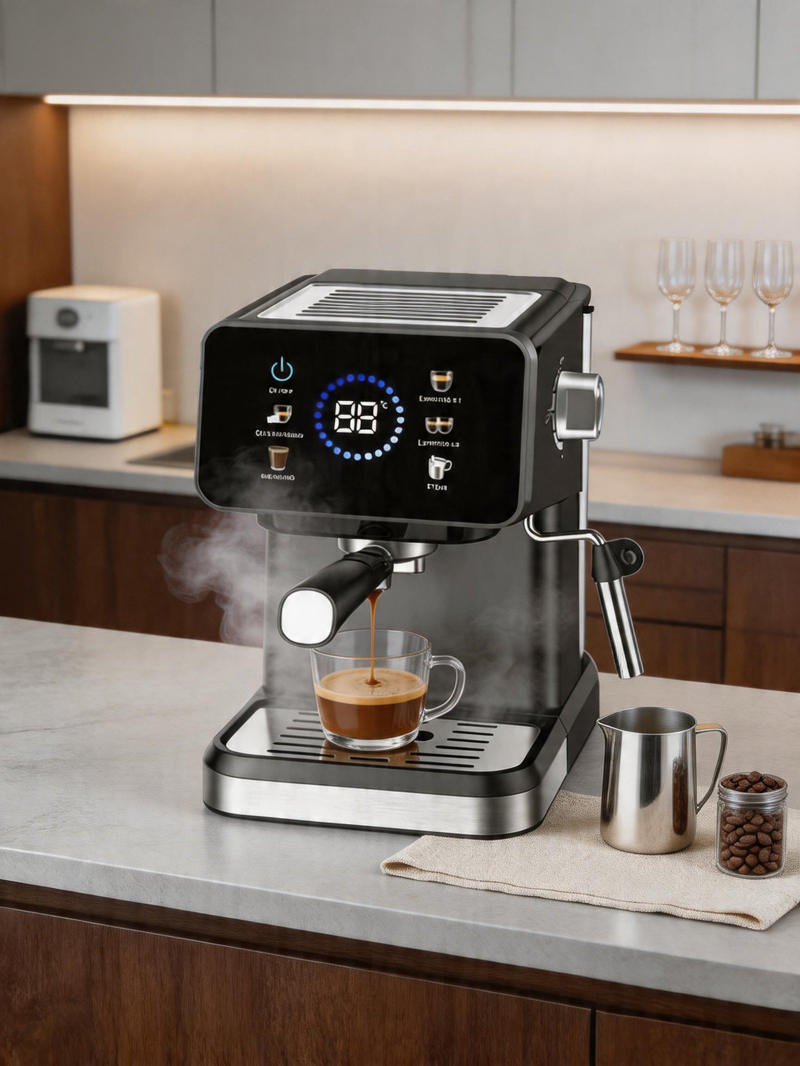 La Cafetera Power Espresso 20 Bares combina diseño moderno con funcionalidad superior. Con su pantalla táctil intuitiva, preparar un espresso perfecto, un cappuccino cremoso o un café en frío con la función ColdBrew es más fácil que nunca. ¡Eleva tus mañanas con una experiencia cafetera profesional sin salir de casa!