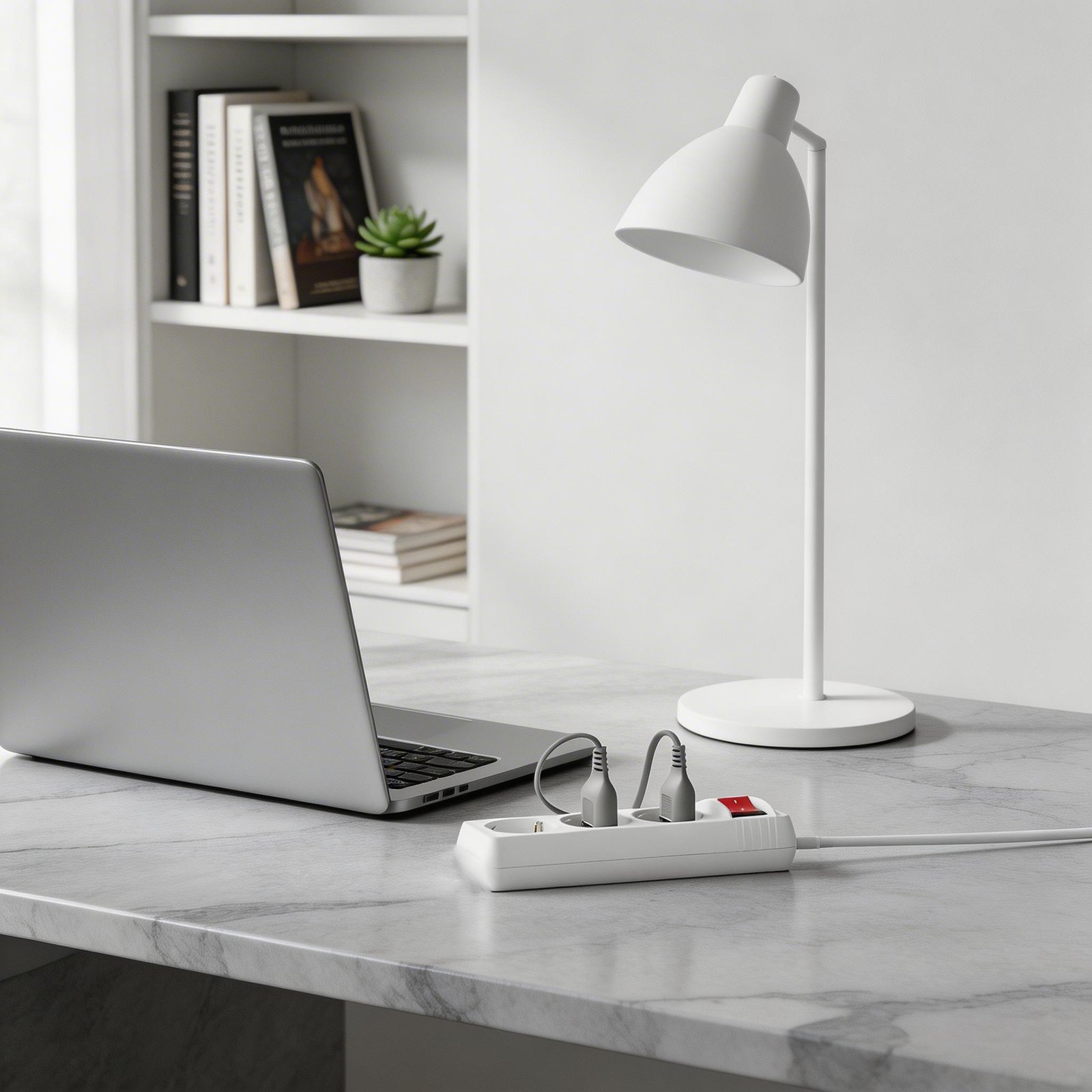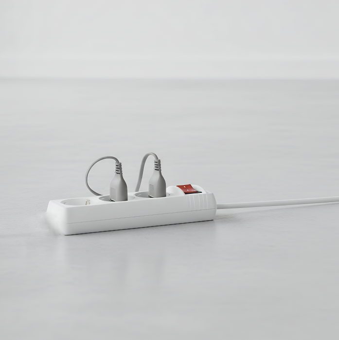 Regleta alargadora con 3 enchufes tipo Schuko que permite conectar varios dispositivos eléctricos al mismo tiempo, ideal para uso en el hogar, oficina o zonas de trabajo. -