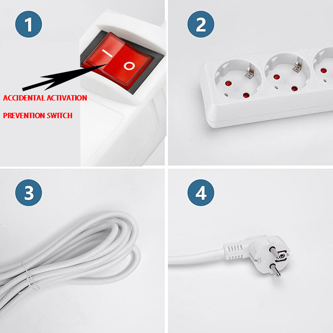 Diseñada para soportar hasta 16A, 250V y 3680W, adecuada para una amplia variedad de aparatos eléctricos como ordenadores, televisores, pequeños electrodomésticos y cargadores. -