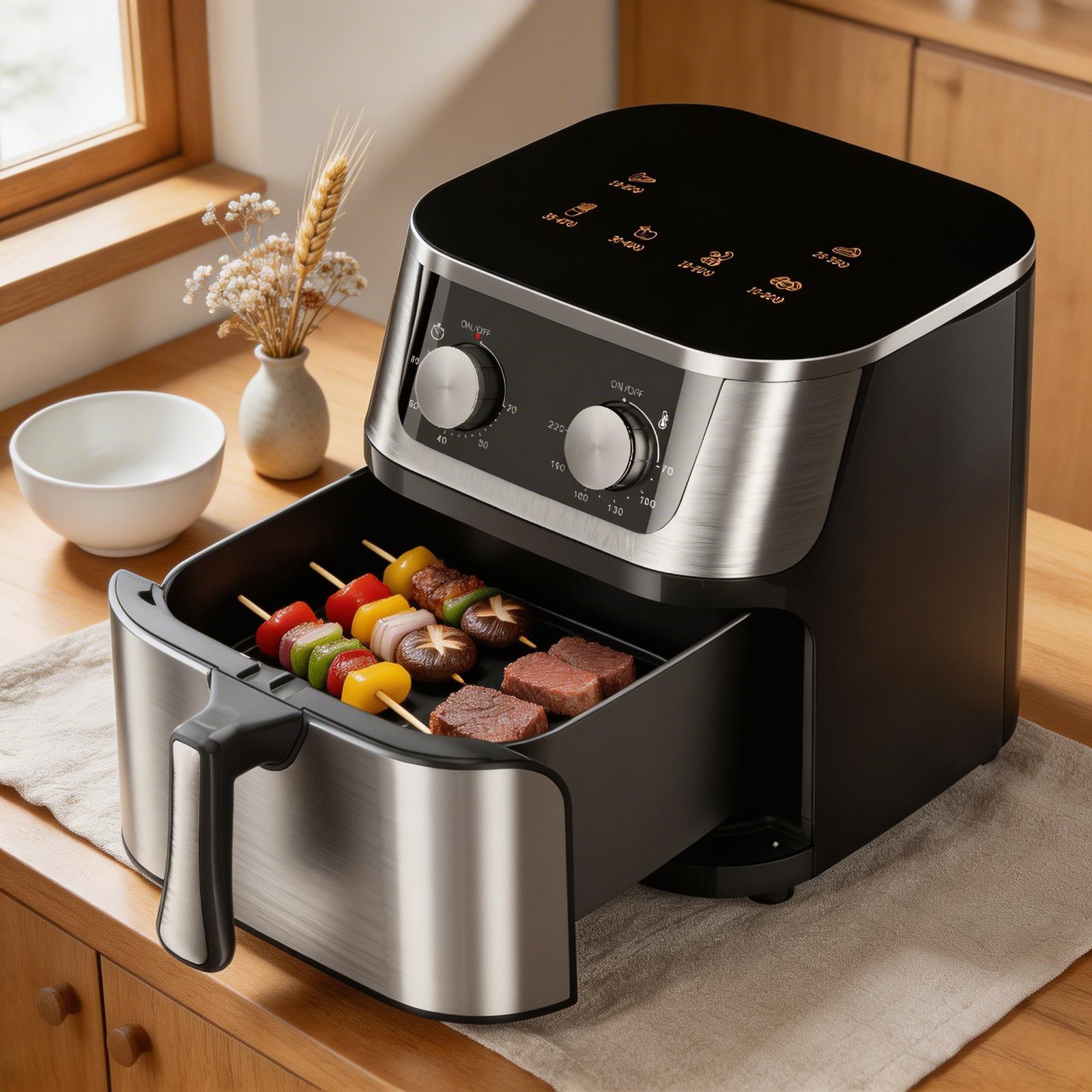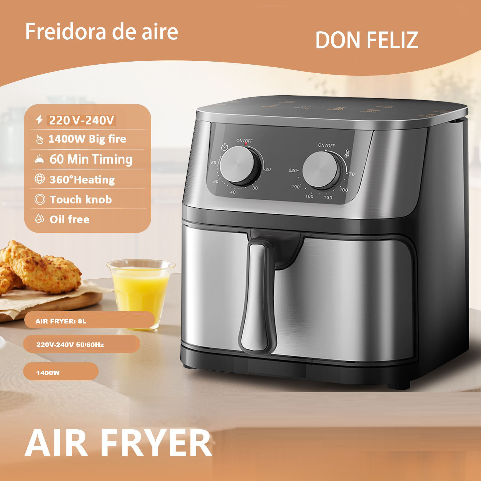 Descubre la Freidora de Aire de 8L, un electrodoméstico diseñado para quienes desean disfrutar de comidas deliciosas sin comprometer la salud. Esta freidora utiliza tecnología avanzada de circulación de aire caliente para cocinar tus alimentos sin necesidad de añadir aceite, ofreciendo resultados crujientes y dorados con menos grasas. Ideal para familias que buscan mantener una dieta equilibrada sin sacrificar sabor.