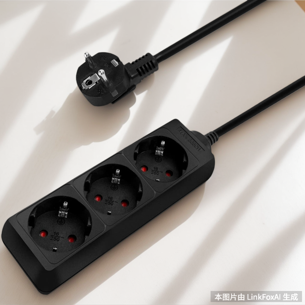 Regleta alargador de 3 enchufes tipo Schuko sin interruptor, ideal para uso doméstico o de oficina. Soporta hasta 16A / 250V y una potencia máxima de 3680W, garantizando seguridad y eficiencia en tus conexiones. Disponible con cable de 1,5 m, 3 m o 5 m para adaptarse a tus necesidades de espacio. Diseño compacto en color negro, resistente y práctico para conectar múltiples dispositivos de forma ordenada.